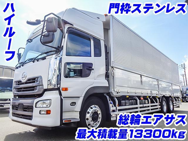 クオン H26年式 UDトラックス アルミウイング 6×2 3軸1デフ 後輪エアサス 日本フルハーフ ラッシング スタンション 380馬力 エスコット AT 10t 25t 大型 バン 箱車