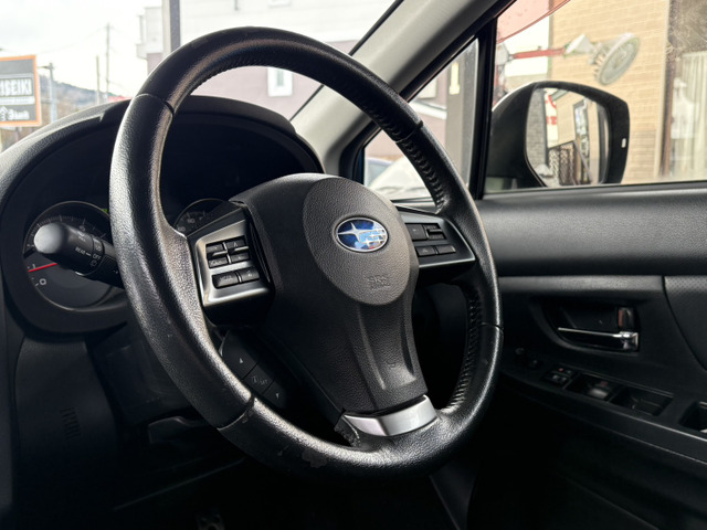 ボディがブラックでシックな印象を与えるスバル インプレッサXV、平成25年式のご紹介です。116,350kmと適度に走られた一台で、本革シートとシートヒーターが快適なドライブを実現。さらに、衝突被害軽減ブレーキや横滑り防止装置で安全も配慮されています。たばこ臭がなく、清潔さが保たれた車です。レーダークルーズコントロールと先進技術が、安心で快適なドライブを提供します。