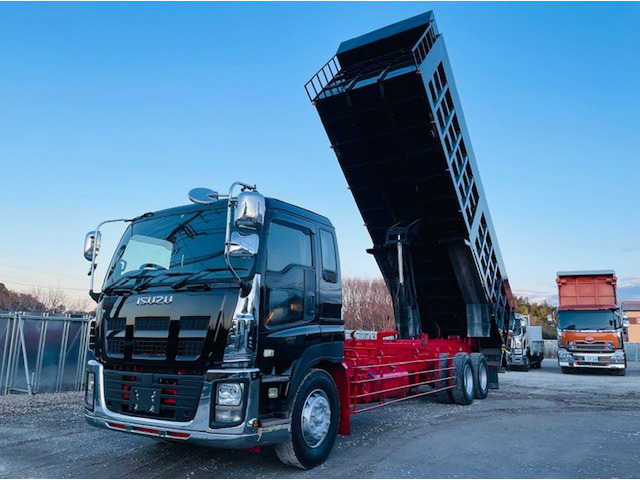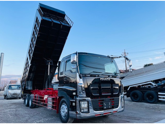 ご覧頂きありがとうございます。 【メーカー】いすゞ 【車種名】ギガ 【車体の形状】深ダンプ 【初年度登録】平成26年 【型式】QKG-CYZ77A 【走行距離】897,796q 【排気量】9830cc 【乗車定員】2名 【燃料】軽油 【最大積載量】10100kg 【車両重量】14730kg 【車両総重量】24940s 【原動機の型式】6UZ1 【馬力】380ps 【シフト】7速 【リサイクル料】13,830円 サイズ 長さ 1146cm 幅 250cm 高さ 374cm 荷台サイズ 長さ850 cm 幅230 cm 高さ220 cm 修復歴:無し エンジン、ミッション共にとても調子が良い車です。 ★現車確認、ご質問等お気軽にご連絡ください!! 土日祝の現車確認も出来ます!!お電話頂ければ来店時間もご相談乗ります! 【セールスポイント】 ・土砂禁 ・メッキパーツ ・リターダー式 ・ETC 当社で色変えも可能です。(別途料金) 【お願い】 こちらのお車中古車になります。 お客様と気持ちの良い取引の為、落札前に現車確認お…