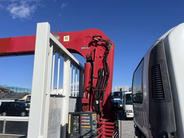 フォワード 古河ユニック製 URU344RKK 4段クレーン フックイン 2.93t吊 ラジコン付 平ボディ 三方開 内フック ロープホール 積載2.65t ターボ190馬力