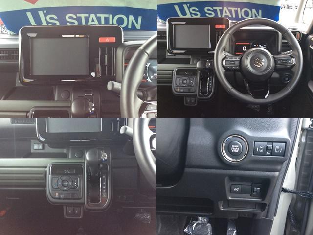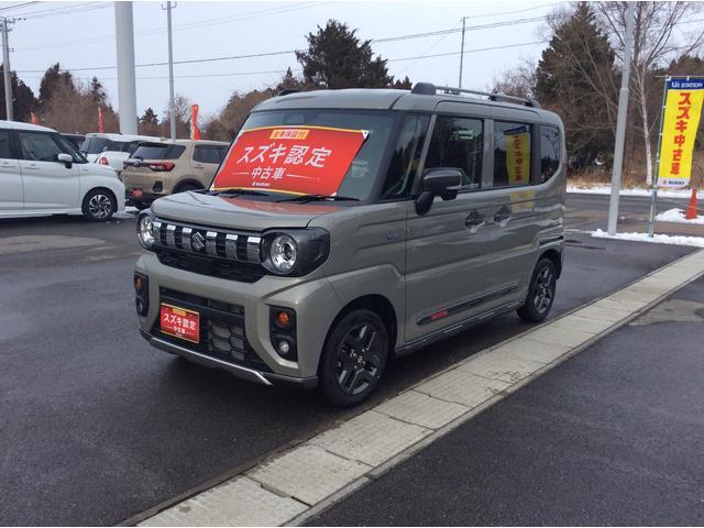 在庫確認・見積もり依頼スペーシアギア ハイブリッドXZ ターボ 4WD 届出済み未使用車 セーフティサポート付き ターボ プッシュスタート シートヒーター オートライト オートエアコン パワステ