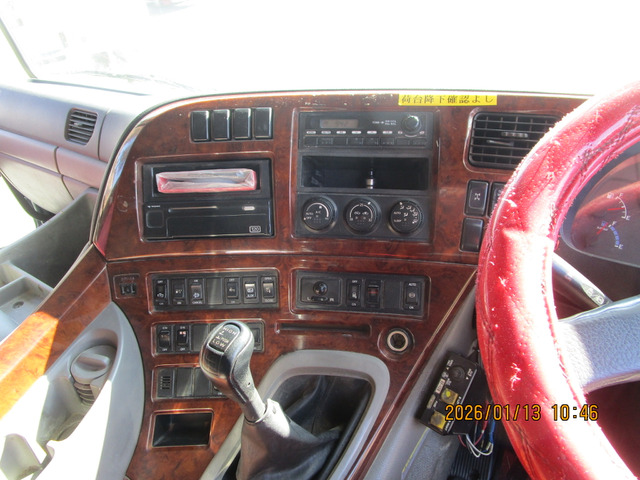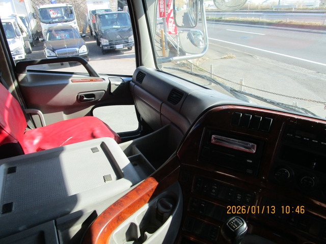 クオン アルミウイング 上物日本フルハーフ製 積載14.1t 荷台寸法960×240×250 荷台床木張り ラッシングレール2段 可倒式中柱 エアラインレール あおり開閉サポート付 スタンションホール