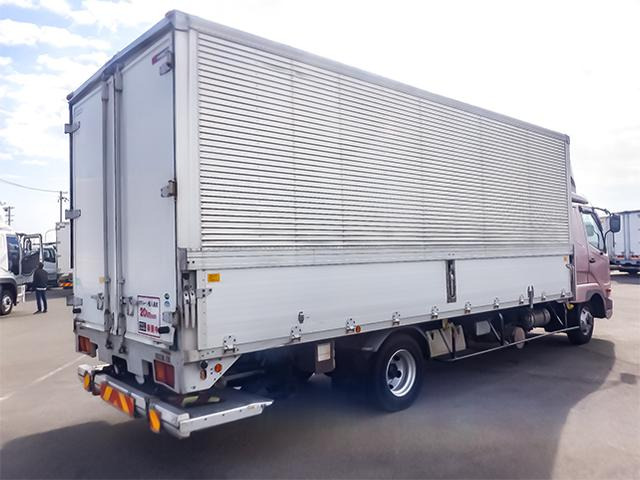 ファイター H28年式 三菱ふそう アルミブロック フルキャブ ベッド付き スタンション 造りボディ 根太増し 240馬力 6速 MT マニュアル 4t 8t 中型 平ボディ キャブオーバー