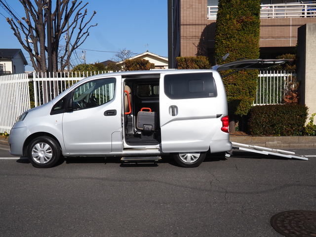 NV200バネットバン 福祉車両・手動スロープ・車いす1名・計7人乗・左側スライドドア連動オートステップ・アシストグリップ・キーレス・車イス後退防止ベルトサード・電動車イス固定装置サード
