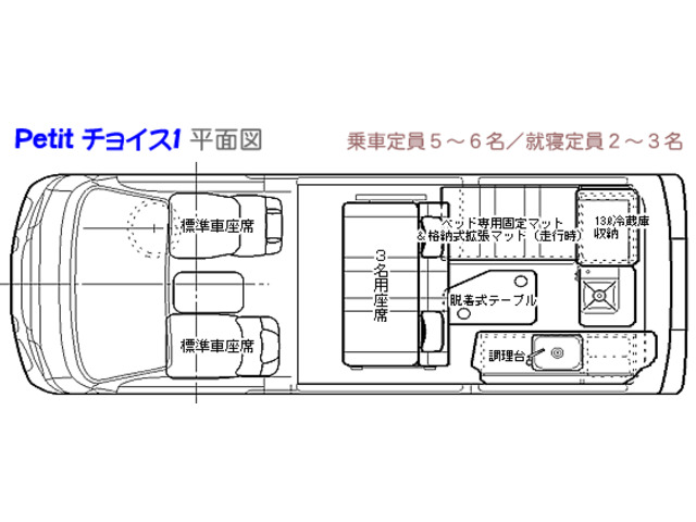 ━━━━━━━━━━━━━━━━━━━━━━━━━ ★ ボンゴバン 2.0D 4WD GLスーパー ミニキャンパーPetit プチ Choice2 & Choice2-LS ★ ━━━━━━━━━━━━━━━━━━━━━━━━━ ■平成19年6月登録 GLスーパー 4WD ■8ナンバーキャンピング車 ・ 7人乗 ■水冷直列4気筒ディーゼルターボ 86ps ■パートタイム4WD ■4速コラムオートマチック ■エアコン/パワステ/パワーウインドウ ■メモリーナビゲーション(MDV-Z701) ・SDナビ/地デジフルセグTV/CD/DVD/Mサーバー ・Bluetooth/HDMI/SD/USB ・バックモニター ・ETC 【車検証情報】 型式:KR-SKF2M 乗車定員:7名 就寝定員:4名 総排気量:2.000cc 燃料の種類:軽油 全長:437cm 全幅:169cm 全高:208cm 【ミニキャンパーPetit詳細】 (標準装備) ・セカンド/3名用バタフライシート・サード/2名用横向きシート ・ポップアップルーフ・プリーツ仕上げカーテン ・コンパクトギャレーセット(10…