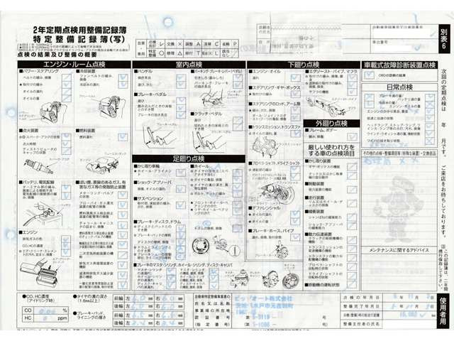 車両価格には定期点検整備に必要な費用が含まれており、点検整備記録簿が交付されます。詳しくは各販売店へお問い合わせください。