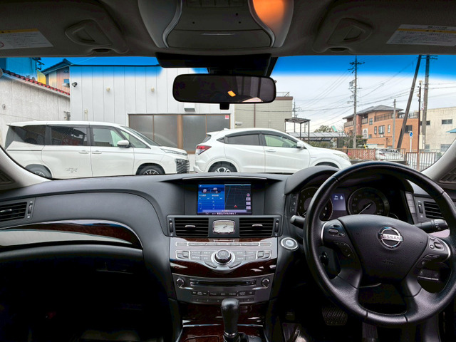 在庫確認・見積もり依頼フーガハイブリッド ベースグレード 黒半革シート/ナビTV/Bluetooth/バックカメラ/HID/ETC/前席電動シート/パワーオットマン/オートライト/スマートキー/プッシュスタート/