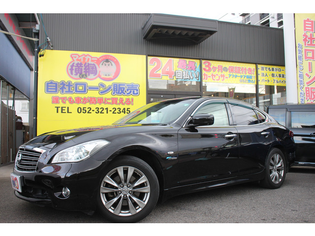在庫確認・見積もり依頼フーガハイブリッド ベースグレード 黒半革シート/ナビTV/Bluetooth/バックカメラ/HID/ETC/前席電動シート/パワーオットマン/オートライト/スマートキー/プッシュスタート/