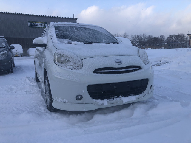 マーチ 12X FOUR 切替え式4WD プッシュスタート スマートキー エンジンスターター リア5面フイルム張り ルーフアンテナ 社外アルミ タイミングチェーン車 現状販売車 整備記録簿