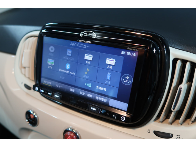 500 ツインエア ポップ カロッエリアナビ・DTV・ETC・レザー調シートカバー・前後ドラレコ