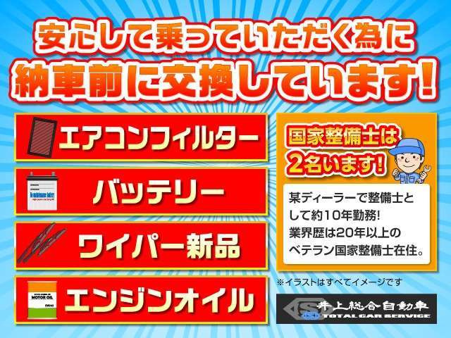 車両価格には定期点検整備に必要な費用が含まれており、点検整備記録簿が交付されます。詳しくは各販売店へお問い合わせください。