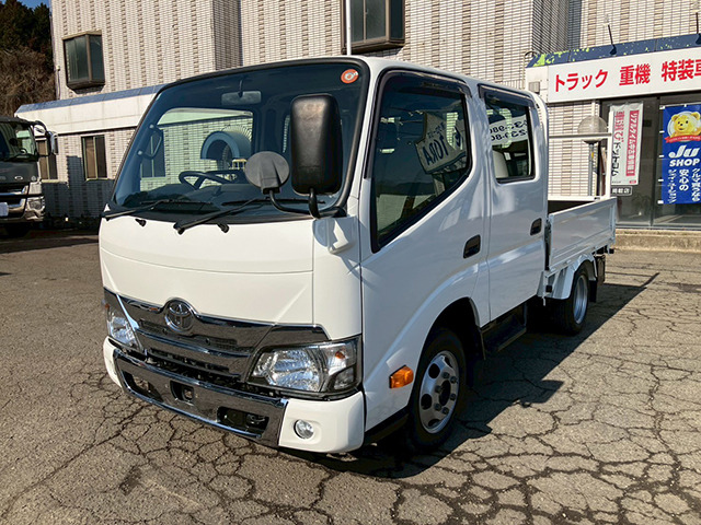 R1年 トヨタ ダイナ ダブルキャブ! ??ワンオーナー車(自社名変済) ??総重量3.5t未満 ??5MT ??3ペタル ??1100kg積載 ??荷台張替済(グリーンボードケ料竹材1枚物) ??リアウマ台付(取外しoK) ??トヨタ純正ホワイト全塗装済 ??リアヒーター付 ??左電格ミラー ??リアパワーウィンドウ ??後期型メッキグリル ??※車内塗料多付着有り 現車確認お願い致します。