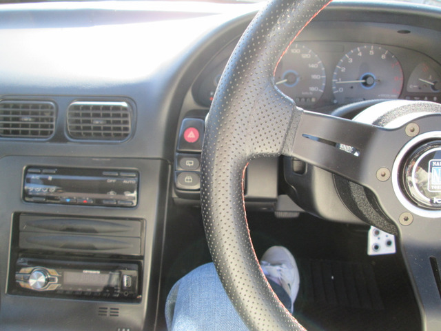 180SX タイプX 社外マフラー MOMOステアリング GReddyブースト計 社外シフトノブ 純正リアスポイラー 純正15インチAW 純正5速MT 純正オーディオ