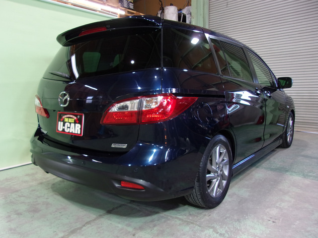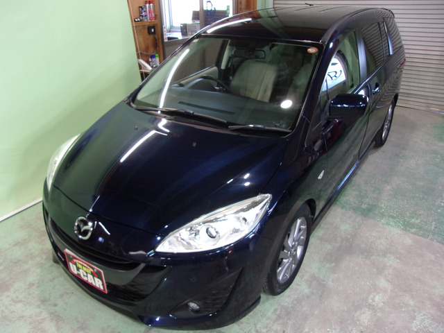 マツダ プレマシー平成26年式、走行71,828kmのダークブルーミニバンはいかがですか?ワンオーナーの禁煙車で修復歴なし、保証付きです。装備も充実しており、ABSやバックカメラ、アイドリングストップに加え、後席モニターを備えているため、家族旅に安心の一台です。ナビやETCも装備されており、記録簿もしっかり残っています。駐車も快適、ドライブを一層快適にする一台です。