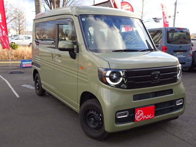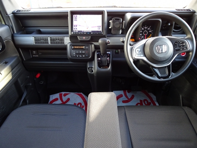 N−VAN ファン 4WD 衝突被害軽減システム クリアランスソナー オートクルーズコントロール 純正メモリーナビ、中古スタッドレスタイヤ、ドライブレコーダー前後装着+ETC付 当社デモカー