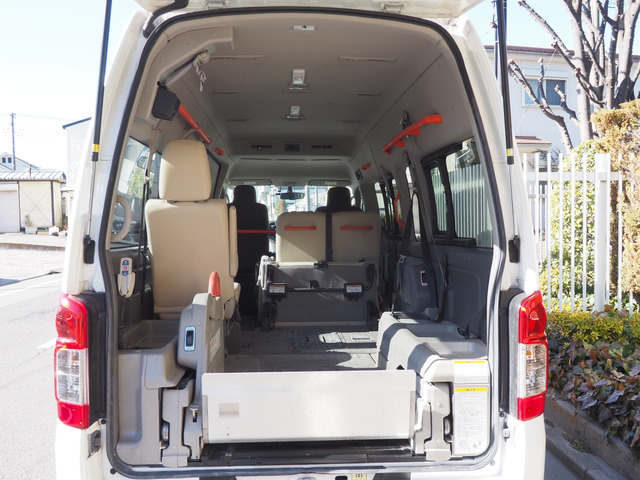 NV350キャラバンバン 福祉車両 チェアキャブ D仕様 車いす4名 10人乗り リアリフト 車いす電動固定装置 電動サイドステップ バックカメラ スライドドアイージークローザー
