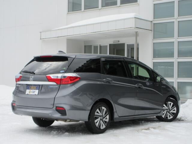 シャトル ハイブリッド ホンダセンシング LEDヘッドライト純正ブルートゥースナビTVバックカメラETCスマートキー社外15インチアルミホイールレザー調シートカバー