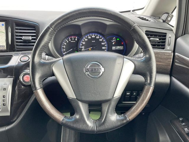 エルグランド 250ハイウェイスター Sキー Pスタート MTモード ナビ フルセグ CD AUX HIDフォグ ウィンカーミラー アルミ 片側Pスラ 木彫パネル ハーフレザーシート