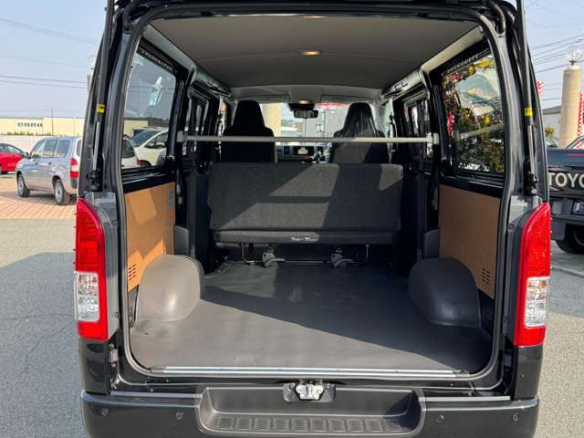 ハイエースバン キャンピング・ベッド・テーブル・棚・キッチン・ウッドインテリア・ナビ・フルセグTV・ブルートゥース・バックカメラ・両側スライドドア・キーレス・テールランプガード・禁煙車