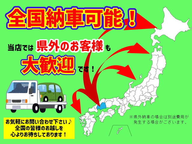 【全国納車可】 当店で販売するお車は全車県外へのご納車も可能です! 遠方のお客様からのお問い合わせも心よりお待ちしております。