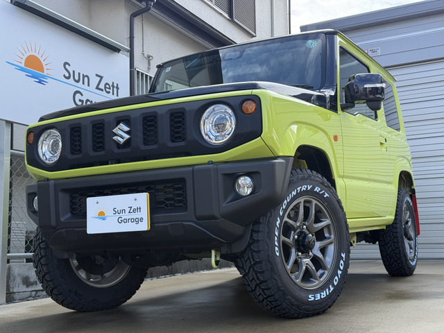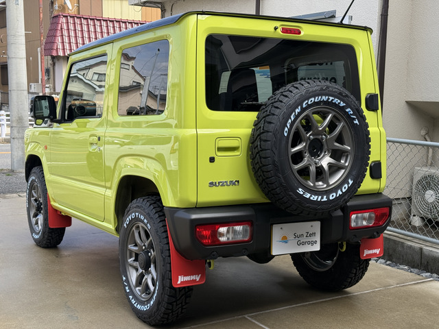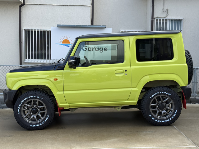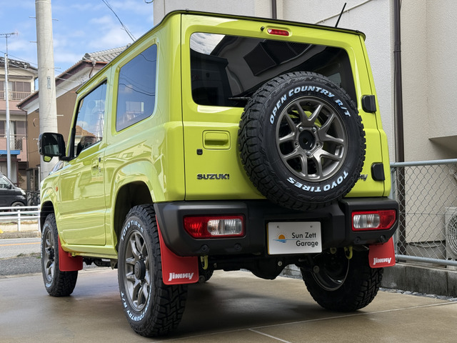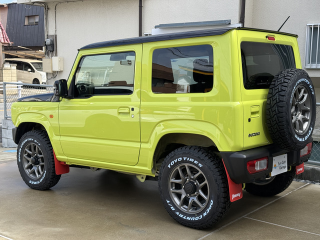 令和6年式ジムニーXCグレード 5MT キネティックイエロー ブラックトップ2トーン受注生産カラー入庫いたしました。足回り、ホイールはジムニー純正ENKEI16インチホイール タイヤはTOYOタイヤ オープンカントリーホワイトレターR/Tのブロックタイヤ185/85R16です。 もちろん背面スペアタイヤも変更しており、ホイール表面にて背負ってます。 マッドフラップはオプションのレッドフラップ装着済み。ビルトインにてETCも装備しておりますので目立たず、スムーズに高速道路も使用できます。フロアマットはジムニー純正ラバータイプのサイマーク新品をお付けします。 マニュアルですので運転も楽しめます。 リフトアップ無しの純正車高です。 完全受注生産の純正特注カラーになりますのでなかなか他と被らない、被りたくない方にはぜひ! その他、希望カスタムございましたらご要望、お問い合わせお待ちしております。