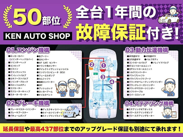 保証が付いています。車両価格には購入後の保証費用が含まれており、保証書が交付されます。保証条件や内容は販売店によって異なりますので、詳しくは各販売店へお問い合わせください。