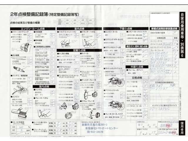 車両価格には定期点検整備に必要な費用が含まれており、点検整備記録簿が交付されます。詳しくは各販売店へお問い合わせください。