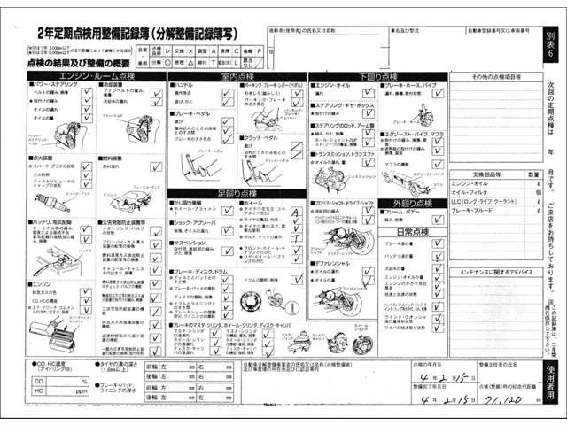 車両価格には定期点検整備に必要な費用が含まれており、点検整備記録簿が交付されます。詳しくは各販売店へお問い合わせください。