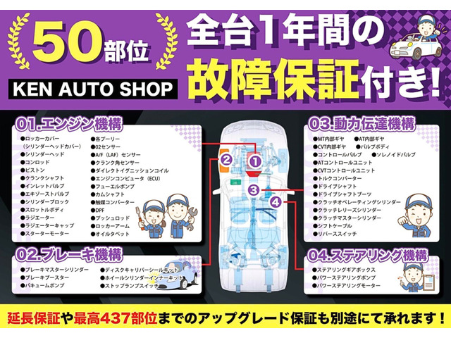 当店提携工場にてアフターフォローも万全! 販売だけではなく、信頼、安心の認証工場で、お客様の大事なお車の点検/整備/修理/板金塗装/カスタム/カーナビ取付/アライメントなど、お客様のご要望に合わせ、他店様よりも遥かに良心的価格にて請け負わせて頂い…