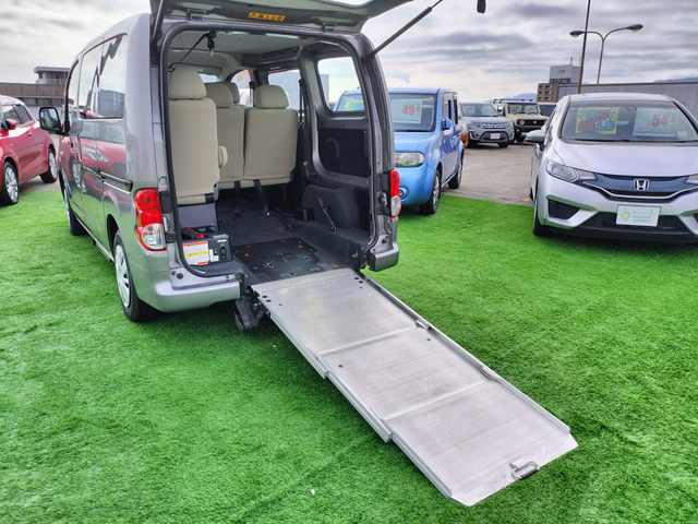 NV200バネットワゴン 8ナンバー 福祉車両 スローパー 車椅子1台 左側オートステップ 補助席1個 6人乗り 両側スライド AMFMラジオオーディオ レベライザー ABS