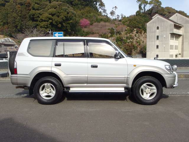在庫確認・見積もり依頼ランドクルーザープラド TS ディーゼルターボ 切替4WD サンルーフ 8人乗りサードシート有 ナローボディ BLADLEY−V 16インチ ジオランダーMTタイヤ バンパーグリル チッピングペイント