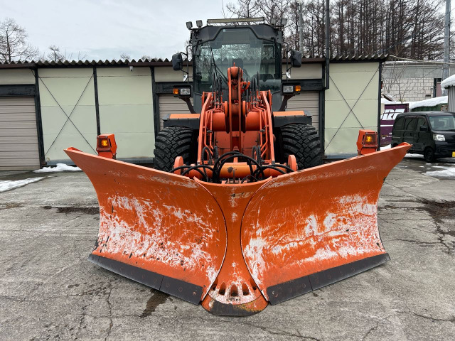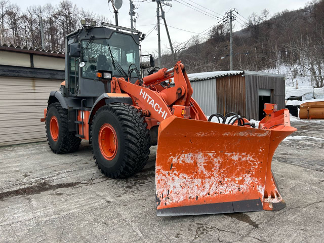 日本 日立ZW80タイヤショベル スノープラウ 4弁配管 ライドコントロール スパイクタイヤ 4700時間 ワンタッチ スノーバケット LED作業灯 回転灯 ツインヒーター