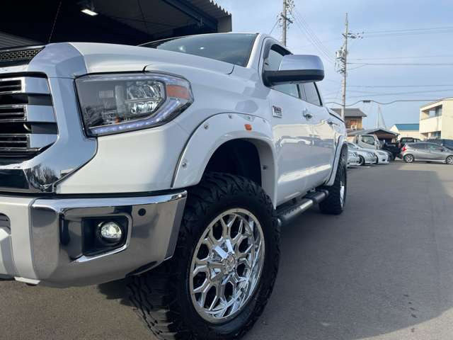 在庫確認・見積もり依頼タンドラ クルーマックス 1794エディション リフトアップXD20アルミオーバーフェンダー社外マフラーサイドステップキー付きシャッタートノカバーブラウンレザーサンルーフ