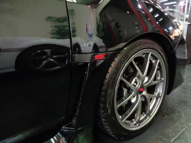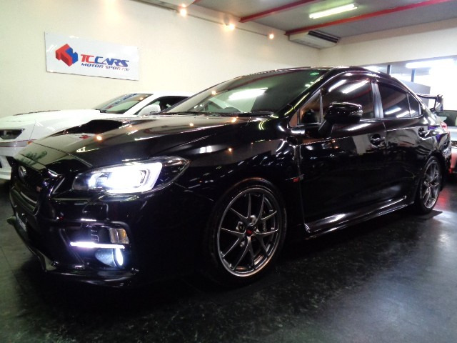 WRX STI STI (禁煙車)(6速MT)(ターボ)(4WD)(社外SDナビ)(黒/赤ハーフレザーシート)(ETC)(ローダウン)(スマートキー&プッシュスタート)(純正18インチAW)