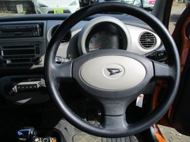 こちらはダイハツ ミラジーノ、平成17年の軽自動車です。走行距離は82,150kmで、オレンジのボディカラーが目を引きます。修復歴はありますが、大切に使われていてワンオーナーの証拠です。キーレスエントリーやABS、盗難防止装置を完備しており安心してお使いいただけます。新たなオーナー様に素敵なカーライフをお届けします!