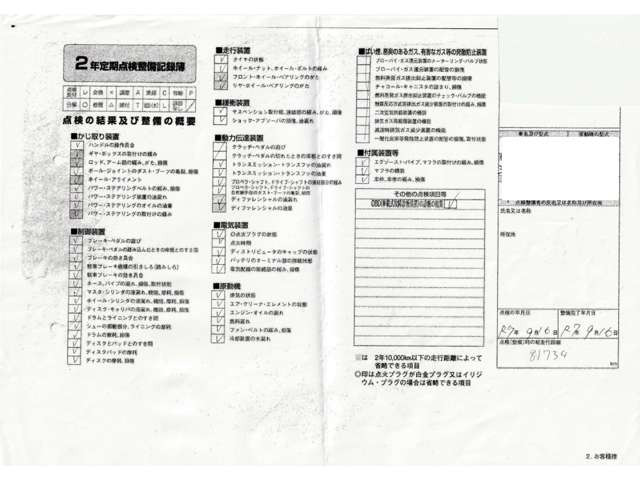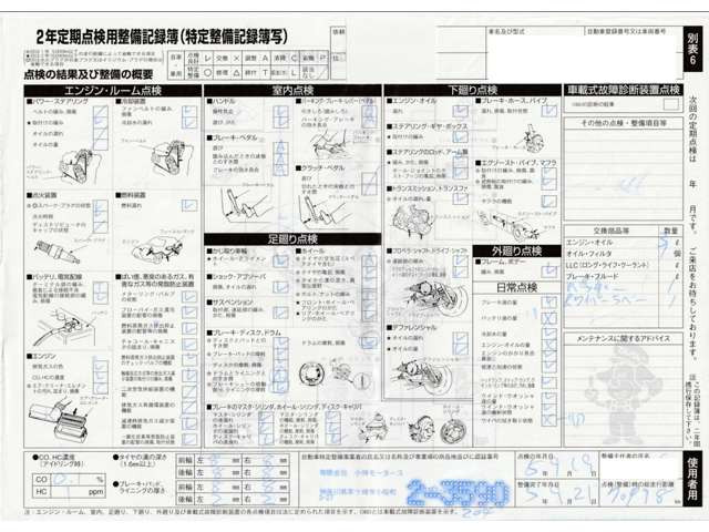 車両価格には定期点検整備に必要な費用が含まれており、点検整備記録簿が交付されます。詳しくは各販売店へお問い合わせください。