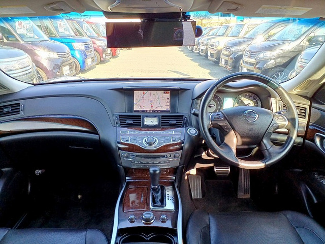 フーガハイブリッド Aパッケージ 純正フルセグナビDVD アラウンドビュー ドラレコ ビルトインETC スマートキー×2 ステリモ パワーシート ハーフレザー パーキングソナー クルーズコントロール