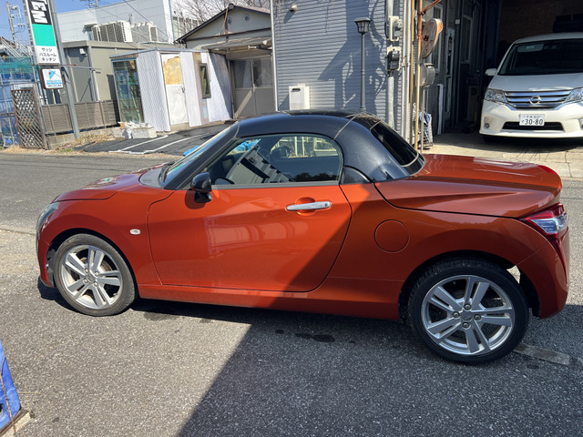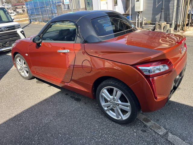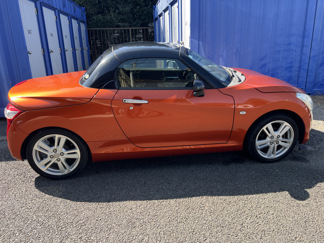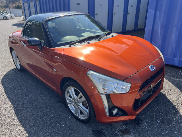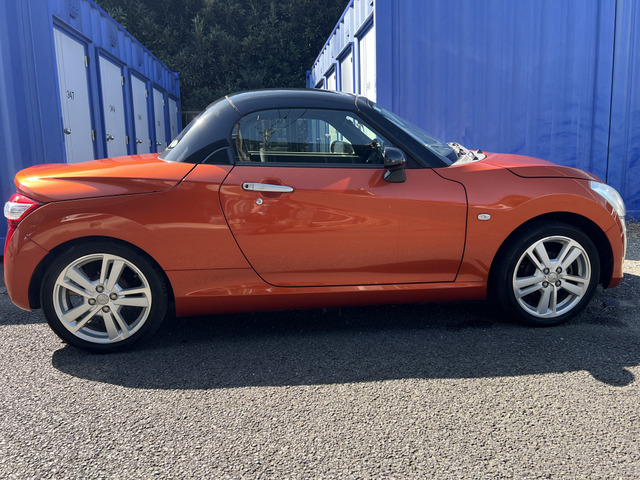 ダイハツ コペンの平成27年モデルはいかがでしょうか。23,529kmの走行距離で、オレンジカラーが目を引くおしゃれなオープンカーです。修復歴がなく、安心の保証付きでお届けします。スタイルも走行性能も申し分ないこの車で、素敵なドライブを楽しみませんか?