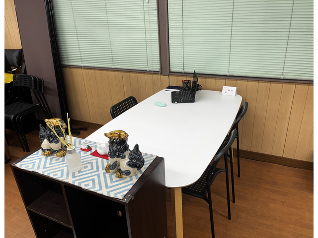 階段を上がると商談ルームがございます。 沖縄県産の可愛いシーサー達がお出迎えしてくれます。