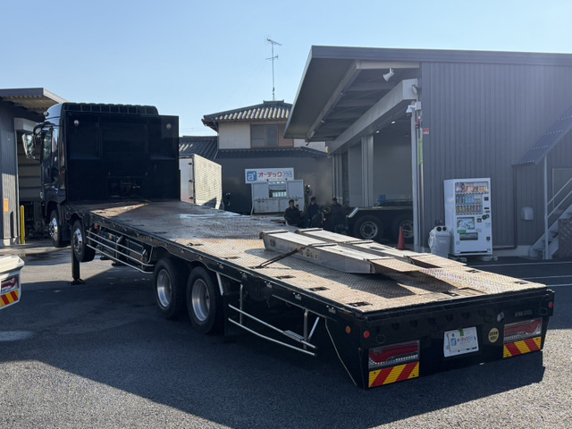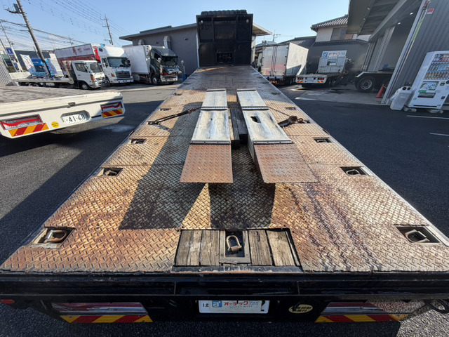 ご覧頂きありがとうございます。 ■この車への「お問合せ」・「無料見積り依頼」、「在庫確認」は、お気軽にどうぞ! ■この車両以外にも「車選びドットコム」におすすめの中古車を掲載しております。 他の在庫車種、お店へのアクセスは【販売店情報ページ】をご覧ください。 問合わせ・来店の際には「中古車情報サイト(車選びドットコム)を見た」とお伝えください。 店頭商談中・売約済の場合もありますので、ご来店の際は事前にお問合せ頂き、該当車両の有無をご確認ください。 ☆ハイジャッキセルフ ☆ラジコン ☆ウインチ ☆床素材:鉄板 ☆荷台内寸:長さ932p幅235p ☆内フック ☆ハイルーフ ☆最大積載量12600kg ☆総輪エアサス ☆アルコア製アルミホイール ☆6M70エンジン 380馬力 スタッフ一同、お客様からのお問合せをお待ちしております。