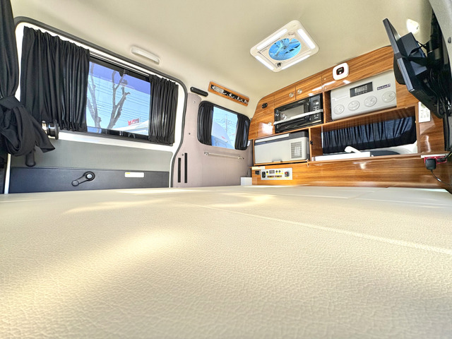 タウンエースバン キャンピングカー、ナビ、ETC、バックモニター、ワンオーナー、ソーラー充電システム、クーラー、ベッド、家具、ルーフベンチレーション、シンク、コンロ、シャワー、