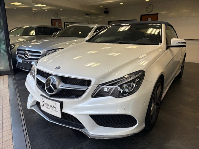 在庫確認・見積もり依頼Eクラス E200 カブリオレ スポーツ 買取車 ブルメスターサウンド 記録簿 スペアキー ユピテルドラレコ パフュームアトマイザー レザーシート HUD BSM ナビ・フルセグ ETC