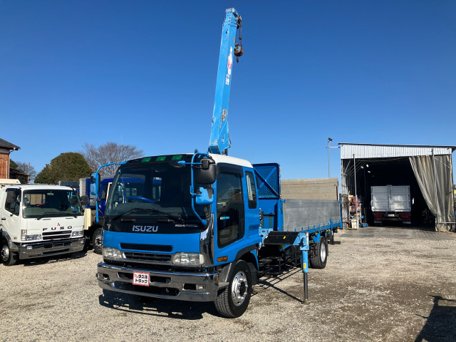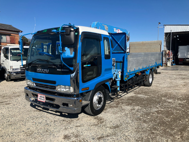 〇タダノクレーン・ZR304(車体同年式) 〇ラジコン付・フックイン・2.9t吊り 〇フルハーフ製跳ね上げパワーゲート 〇増トン車・旧積載5.7t 〇5.5mセミワイド・アルミブロック・床鉄板張り 〇6HH1生エンジン・225馬力 〇6速ミッション 〇排ガス適合・煤焼き無し 弊社在庫一覧は商品説明文の末尾付近 ▼その他の販売店情報 その他の出品車両 をクリックいただくと一覧がご覧いただけます♪ ☆☆☆商品詳細説明☆☆☆ メーカー/車名 : いすゞ/フォワード 初年度登録 : 平成12年12月 ボディ形状 : クレーン付平ボディ・PG付 上物メーカー : タダノ/フルハーフ 走行距離 : 426,643km 車検証記載寸法 : 長862cm幅238cm高301cm 荷台内寸 : 長553cm幅221cm高68cm 登録状況 : 一時抹消 最大積載量/総重量 : 5700kg/12710kg (一時抹消の為、車検登録時積載量変更の可能性あり) 排気量/馬力 : 8220cc/225馬力 型式/エンジン型式 : KL-FSR33L4R/6HH1 ミッション : 6速ミ…