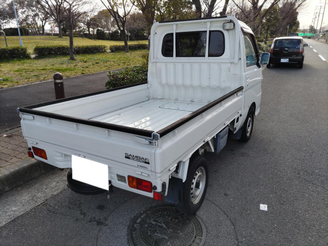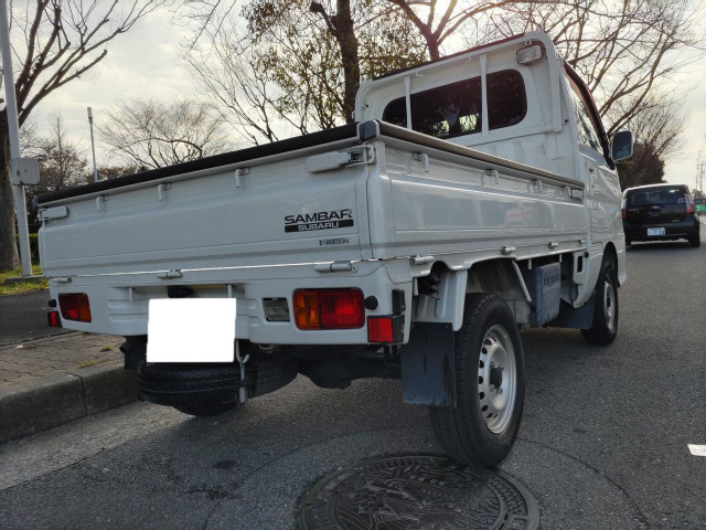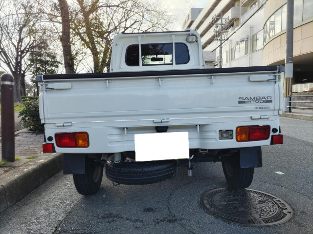 サンバートラック ベースグレード パワーステアリング エアバッグ 3方開荷台 ロープフック付トリイ 荷台作業灯 シガーソケット マニュアルエアコン 間欠ワイパー 助手席パーソナルBOX
