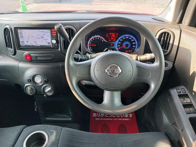 キューブ 15X 純正メモリーナビ バックカメラ ナビ連動ドラレコ&ETC オートエアコン フォグランプ インテリジェントキー 本革巻きステアリング アイドリングストップ
