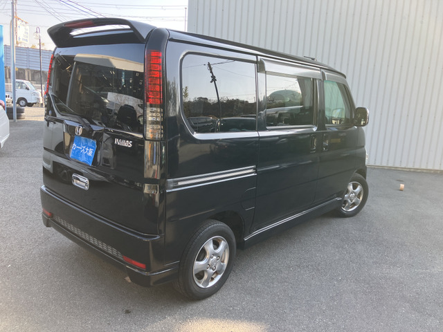 在庫確認・見積もり依頼バモス M・スタイリッシュパッケージ 4WD車・車検整備2年付き・タイベル交換済み・フルフラットシート・キーレス・純正エアロ・外品アルミホイール・タバコ臭無・ペット同乗歴無・
