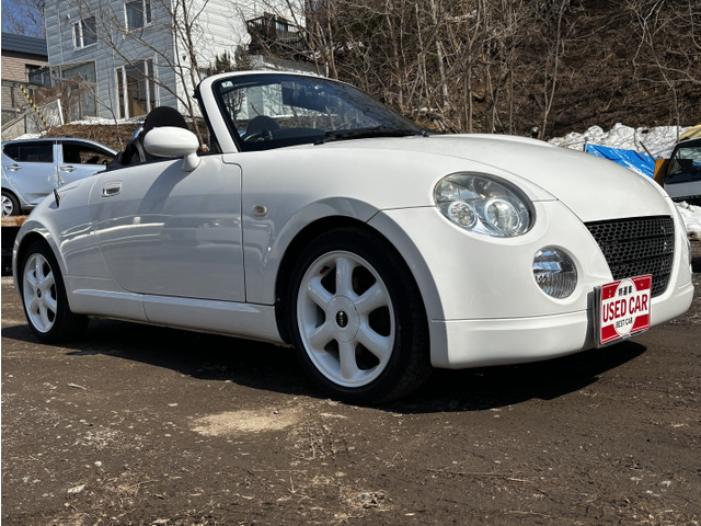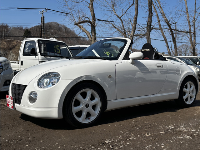 ダイハツ コペンをご検討中のあなたへ。平成17年式のオープンカーであるこの1台は、セカンドアニバーサリー仕様として、特別なレカロシートを装備し、ミニのホイールでスタイリッシュに。たばこ臭なしで、内装も快適です。走行距離140,000kmを感じさせないきれいな下回りもポイント。