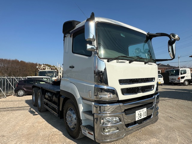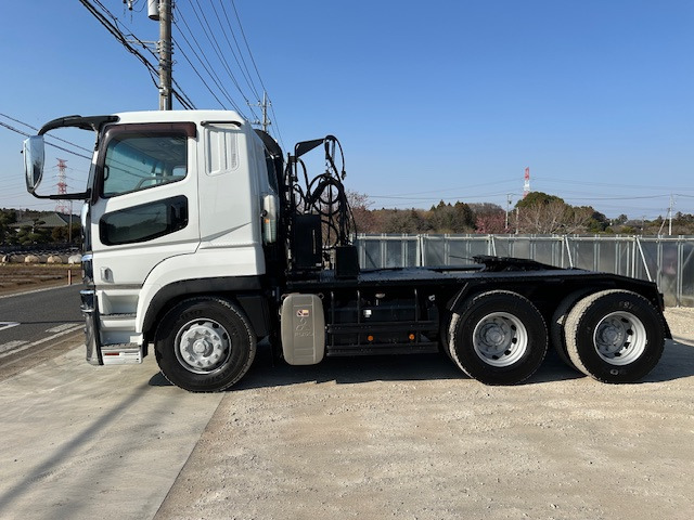 ご覧頂きありがとうございます。 商品説明 【メーカー名】三菱 【車種名】スーパーグレード 【車体の形状】トレーラーヘッド 【初年度登録】平成29年 【型式】QKG-FV60VJR 【走行距離】497,190q 【排気量】12800t 【車検】令和9年3月23日 【乗車定員】2[2]名 【燃料】軽油 【最大積載量】51470[18000]kg 【車両重量】9360kg 【車両総重量】60940[27470]kg 【原動機の型式】6R10 【馬力】520ps 【シフト】AT 【リサイクル料】13,480円 サイズ 長さ 678p 幅 249p 高さ 323p 修復歴:無し エンジン、ミッション共にとても調子が良い車です。 ★点検記録簿 R8年有り ★現車確認、ご質問等お気軽にご連絡ください!! 土日祝の現車確認も出来ます!!お電話頂ければ来店時間もご相談乗ります! 【セールスポイント】 ・PTO式 ・2デフ ・メッキパーツ ・520PS ・車検R9年3月 当社で色変えも可能です。(別途料金) 【お願い】 こちらのお車中古車…
