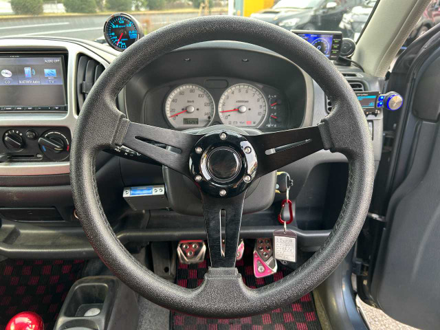 Kei Bターボ 禁煙車/インタークーラーターボ/4WD/シートヒーター/HKSマフラー/モンスターエアークリーナー/MOMOステアリング/スズキスポーツダウンサス/キーレス/外アルミ/