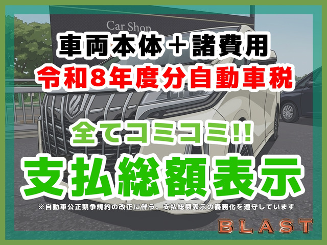 店頭において車両を引き渡す場合の消費税を含めた現金価格です。展示時点で装着済みの装備等(ナビ、オーディオ、カスタムパーツ等)も含めた価格となります。